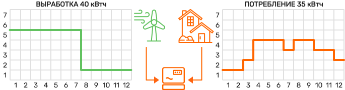 Любое физическое или юридическое лицо может генерировать электроэнергию с помощью солнечных панелей, ветрогенератора, дизельной или газовой установки, подсоединится к общей электрической сети и отдавать/продавать в неё излишки электроэнергии.