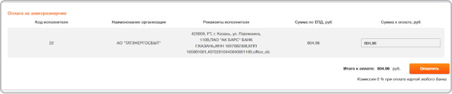 Вкладка «Оплата за электроэнергию» отображается только у тех клиентов, которые имеют прямые договоры электроснабжения АО «Татэнергосбыт».