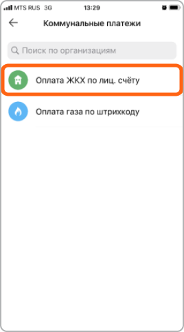 1. В разделе Платежи выберите подраздел Коммунальные платежи и Оплата ЖКХ по лиц. счету. Затем введите номер лицевого счета, указанный в счете за ЖКУ.