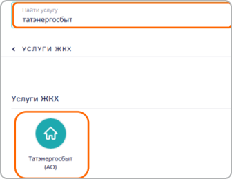1. Выберите подраздел «Услуги ЖКХ» в разделе «Платежи» и введите «Татэнергосбыт» в поисковой строке найти услугу