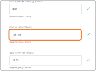 3. Выберите поставщика услуг по наименованию, либо по коду, указанному в столбце «Код исполнителя» единого платежного документа и введите сумму, которую желаете оплатить